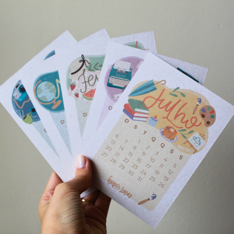 - Cada mês tem sua própria arte, feriados e datas comemorativas.