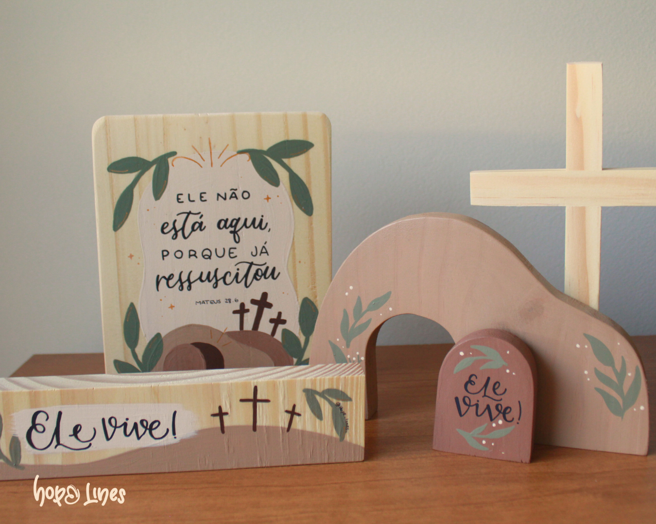 Conjunto decorativo especial celebrando a ressurreição de Cristo. Perfeito para decorar sua casa ou presentear, lembrando o verdadeiro significado da Páscoa.