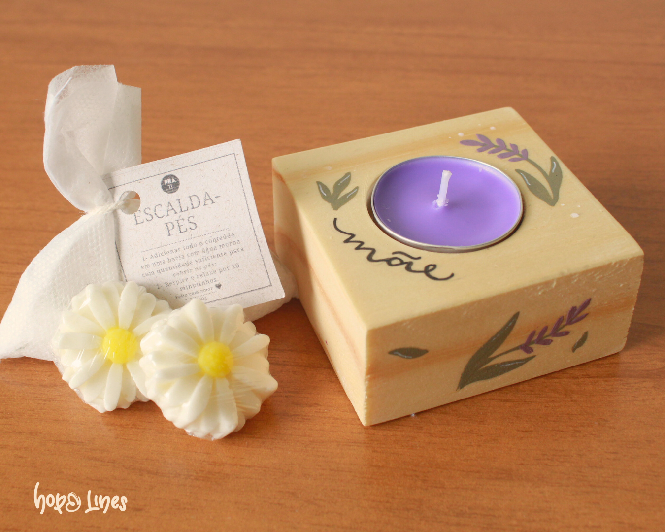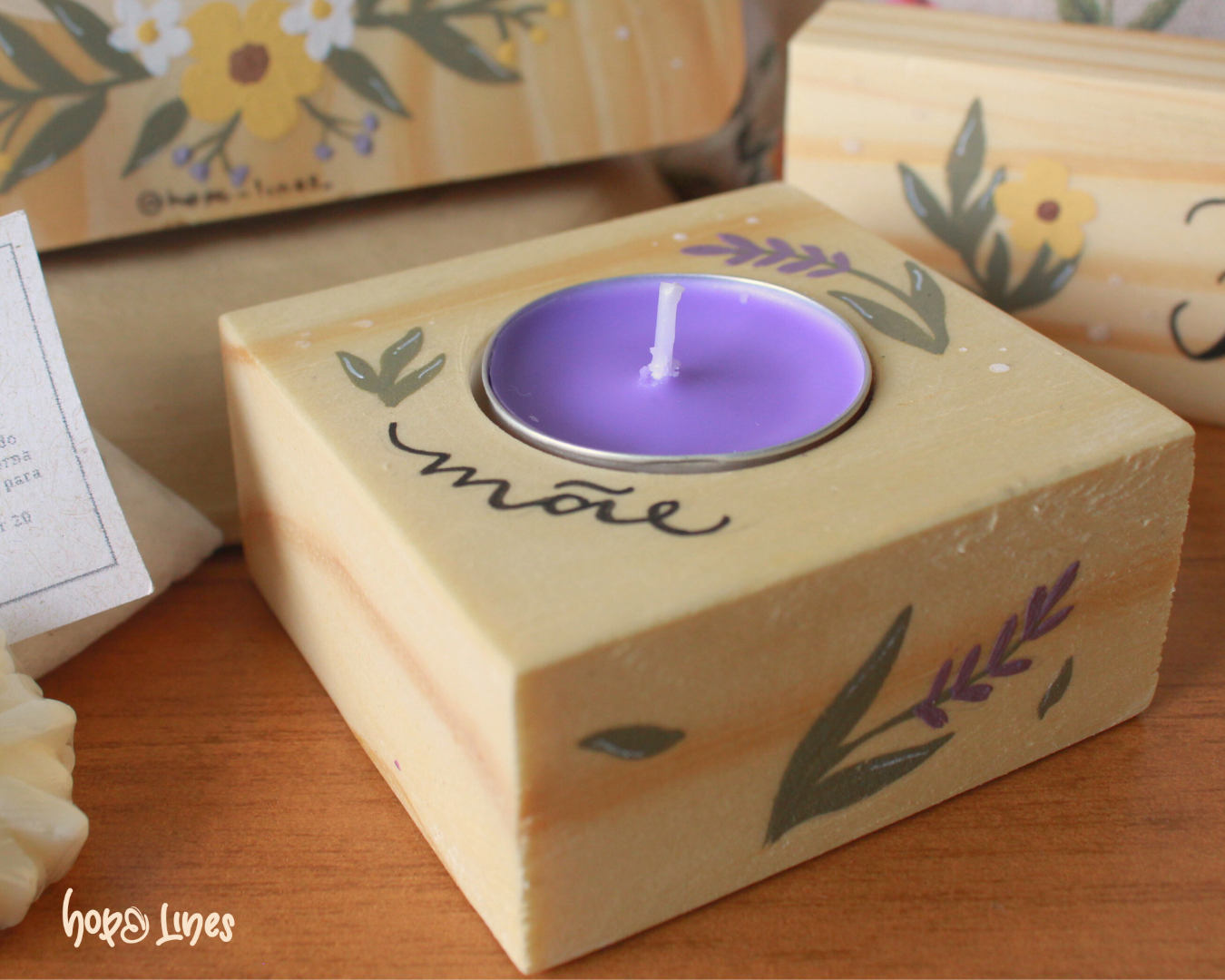 - Vela de Lavanda - Aroma relaxante em base de madeira pintada
