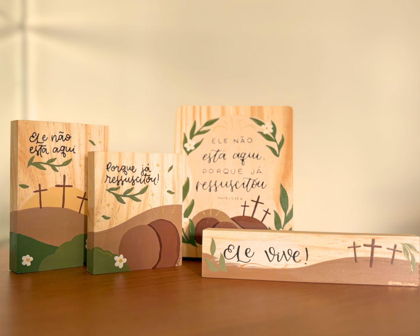 Conjunto decorativo especial celebrando a ressurreição de Cristo. Perfeito para decorar sua casa ou presentear, lembrando o verdadeiro significado da Páscoa.