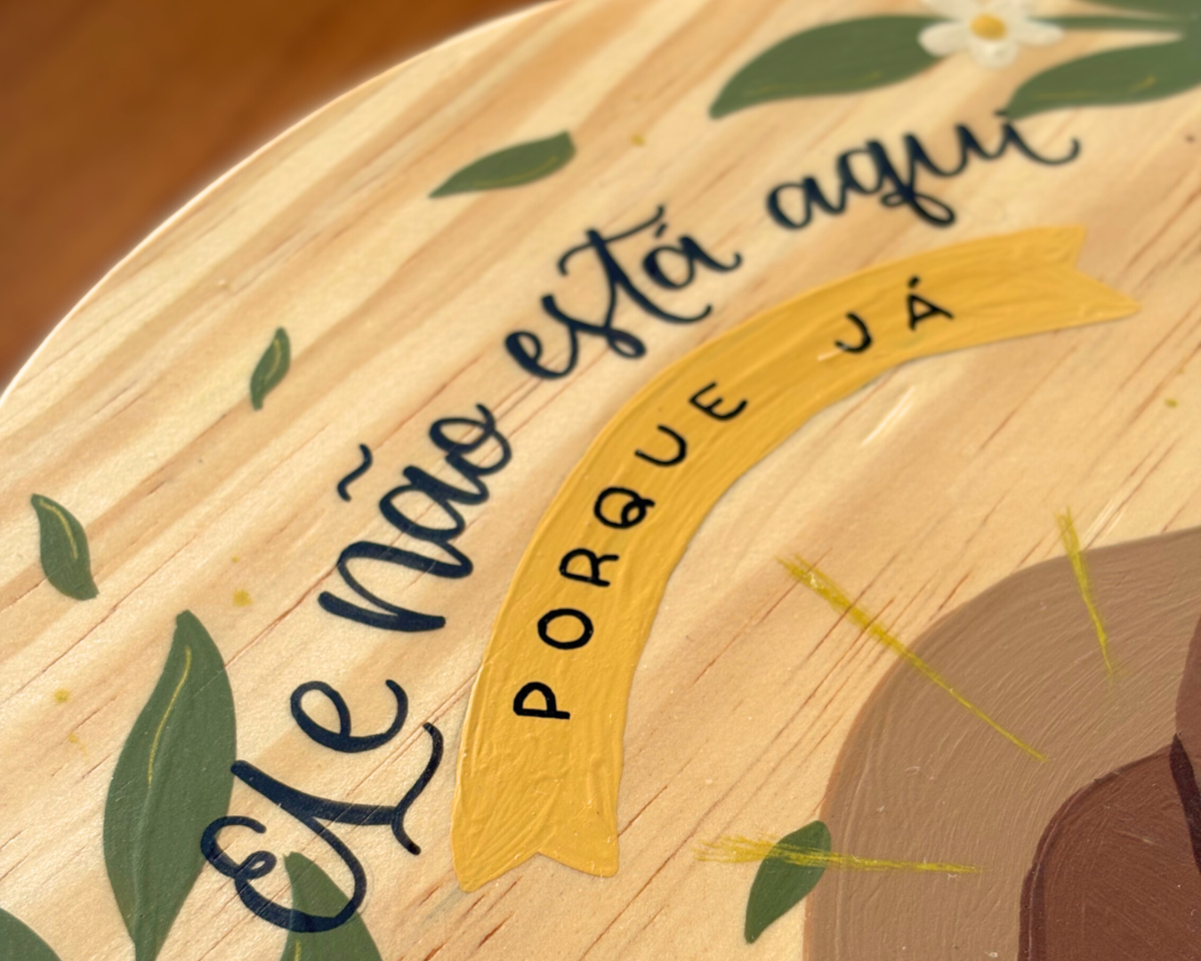 Feito à mão em madeira pinus, o tamanho Logos se destaca pelo seu formato circular, que traz um visual moderno e único. Com suporte para pendurar na parede ou na porta, ele é perfeito para marcar momentos especiais, como a chegada de um bebê, celebrações ou temporadas comemorativas.